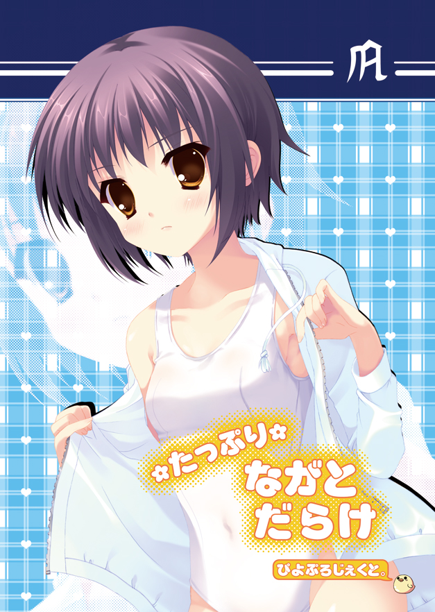00s1girlblushbrown eyescovered navelfemale focusgrey hairheartjacketjacket over swimsuitnavelone-piece swimsuitopen clothesopen jacketpurple hairschool swimsuitshort hairsoloswimsuitundressingwhite one-piece swimsuitwhite school swimsuityellow eyeszoom layer