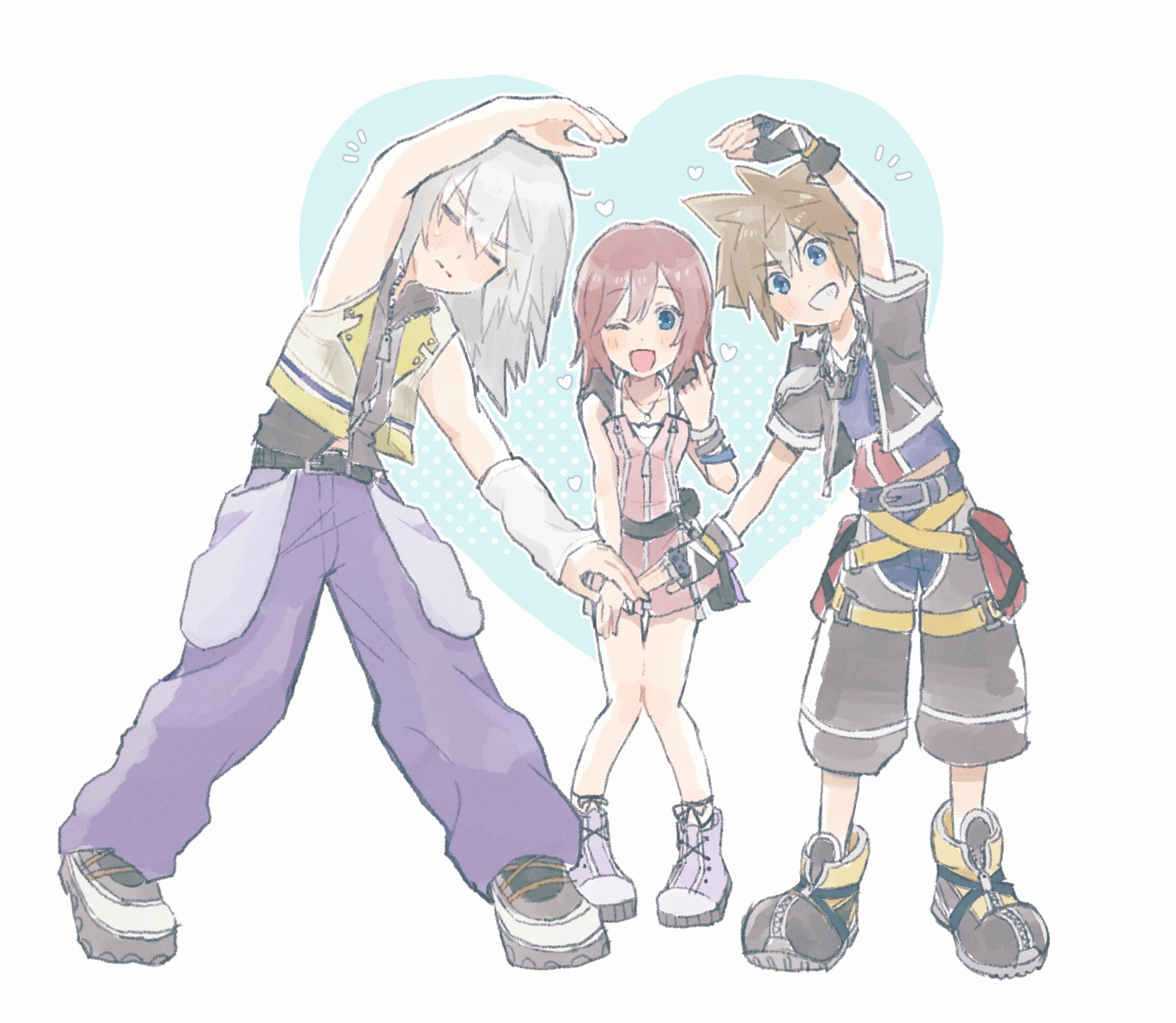 :d1girl2boysblack jacketblack shoesblue eyesblushbrown haircropped jacketdressfinger heartfull bodygrey hairheart armsheart arms duojacketkpp khlooking at viewermedium hairmultiple boysone eye closedopen clothesopen jacketopen mouthpantspink dresspurple pantsred hairshoesshort hairsimple backgroundsleevelesssleeveless dresssmilestanding
