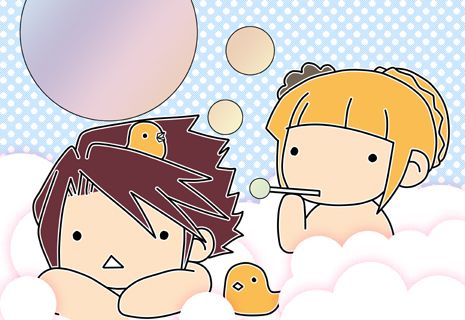 00s1boy1girlbathblonde hairbrown hairbubblebubble bathchibikiserumixed-sex bathingrubber duckshared bathingsmoking pipetriangle mouth