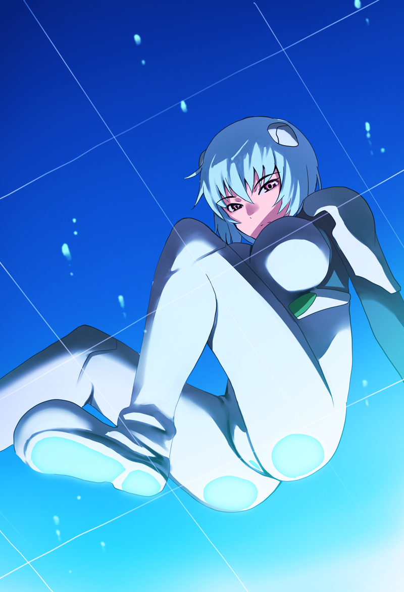 nanagami you, ayanami rei, katsuragi misato, neon genesis evangelion, non-web source, bent over, blonde hair, blue hair, bread, food, leaning forward, red eyes, school uniform, serafuku, shop, short hair, tongs, tray