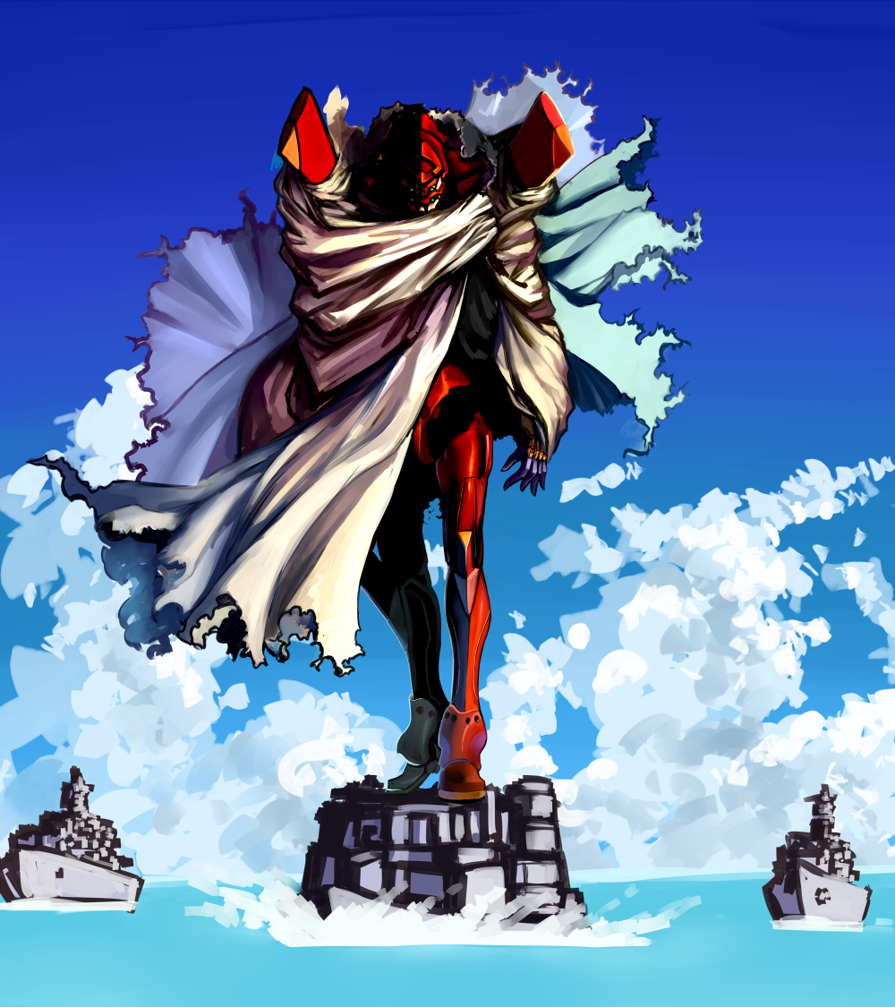 battleshipcapeclouddayepicmechamecha focusmilitarymilitary vehicleno humansoceanrobotshipwarshipwatercraft