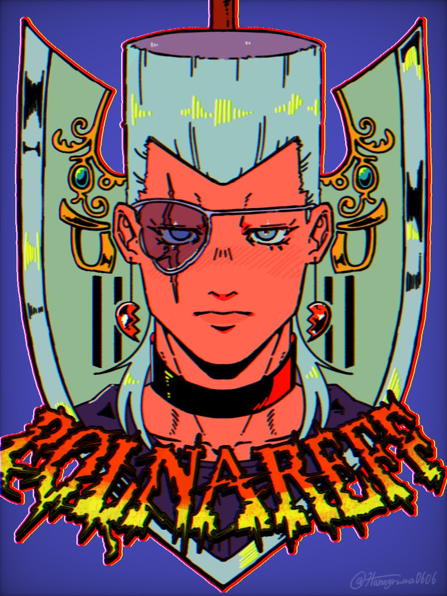 1boyarrow (projectile)blue eyescharacter namechokerchromatic aberrationearringseyepatchflattopgrey hairhanagruma0606heartheart earringsjewelrylooking at viewermale focusportraitscarscar across eyescar on facesolostraight-ontwitter usernameweapon