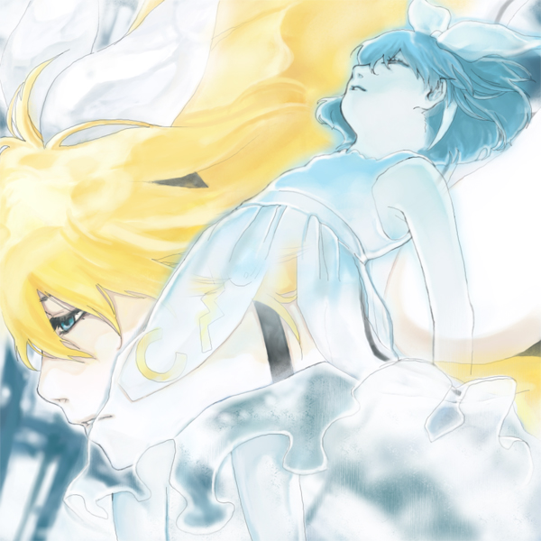 1girlblonde hairblue eyeschildclosed eyesdressdual personahair ribbonribbonsailor dressthighhighszettai ryouiki
