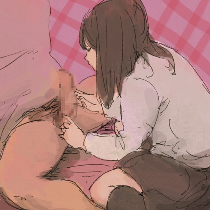 1boyblack hairblack legwearbottomlessclosed eyesfemaleFlag for Deletionkneehighspenisplaidplaid backgroundschool uniformsittingstraightwariza