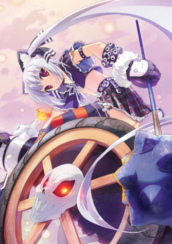 1girlanimal earscandlecannoncat earsfemale focusflat chestgloveslong hairmacered eyesribbonskirtskullsolothighhighstwintailsweaponzettai ryouiki