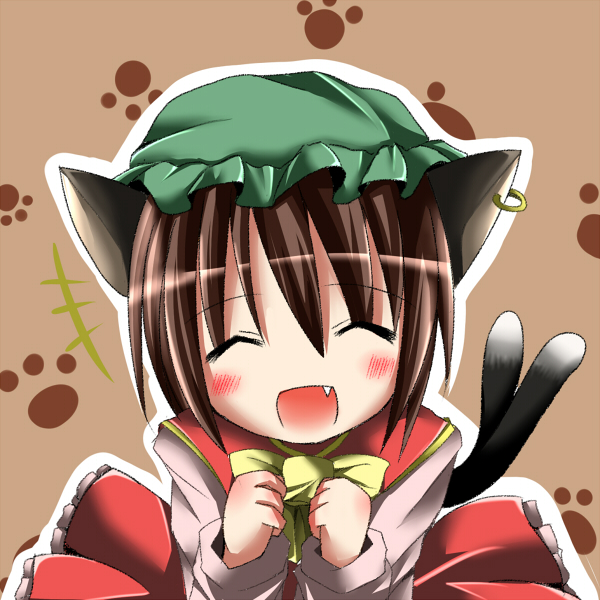 1girlanimal earsblushcat earscat girlcat tailclosed eyesearringsfangfemale focushatjewelrymultiple tailsopen mouthribbonshort hairsmilesolotail