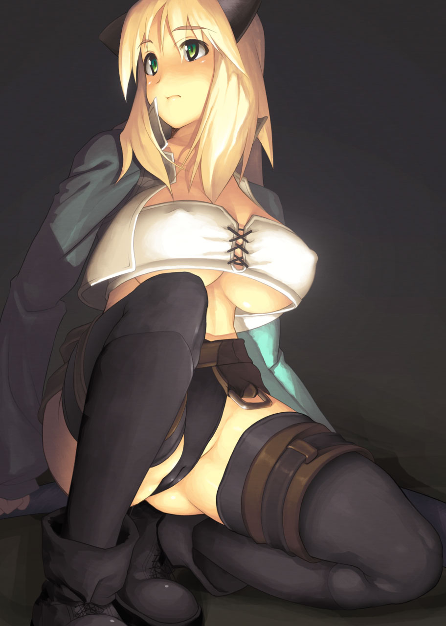 1girlanimal earsbandeaublack thighhighsblonde hairbootsbreastscameltoecovered erect nipplesfemale focusgreen eyesgroinlarge breastspartially visible vulvasolostraplessthighhighstube topunderboob