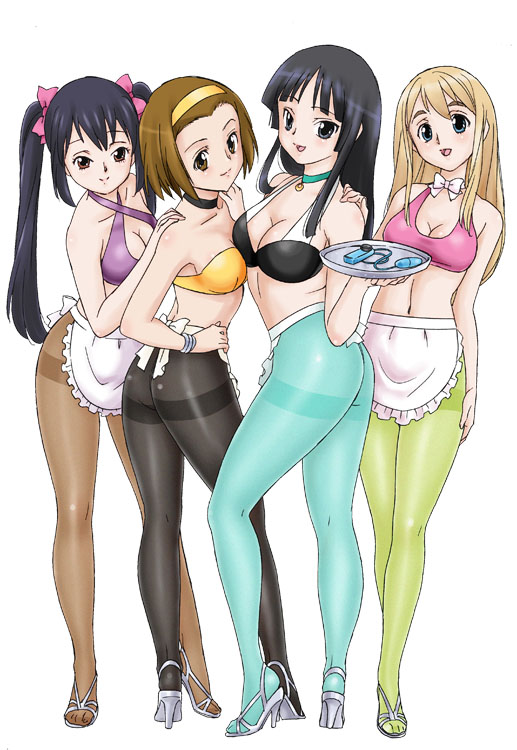 mikazuki (feimao), moyashi (narukami), kamina (ttgl), kittan bachika, space yoko, yoko littner, tengen toppa gurren lagann, 00s, 1girl, 2boys, bandeau, multiple boys, strapless, tube top