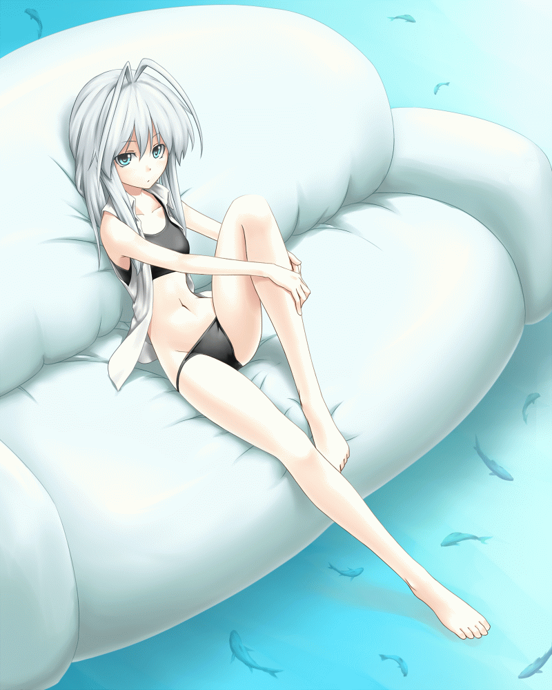 1girlantenna hairaqua eyesbarefootbikinichaircouchfeetfeet on chairfemale focusfishhugging own legslegslong legslyingon backsittingsoloswimsuit