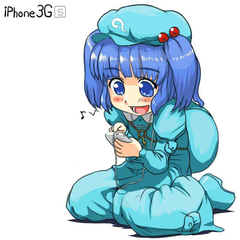 1girlbackpackbagblue eyesblue haircellphonefemale focusfull bodyhair bobbleshair ornamenthatiphoneiphone 3gmatching hair/eyesphonerandoserushort hairsimple backgroundsmartphonesolotwintailstwo side upwhite background
