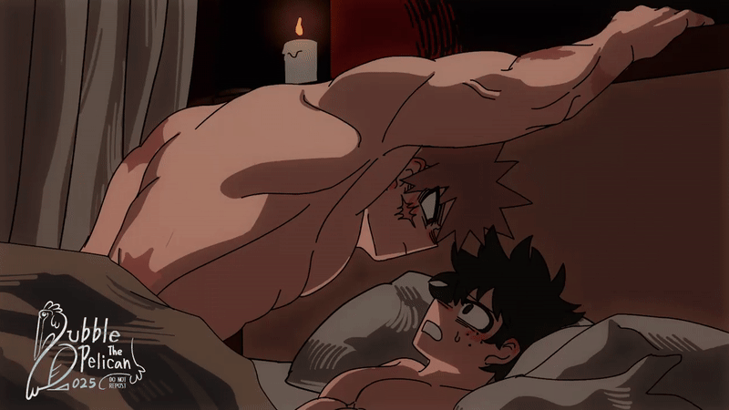 absanalbackbakudekubedbedroomblonde hairblushbreakingbroken bedbubble 10119candlefrecklesgreen hairlyingon bedpectoralspillowscarsexsweatyaoi