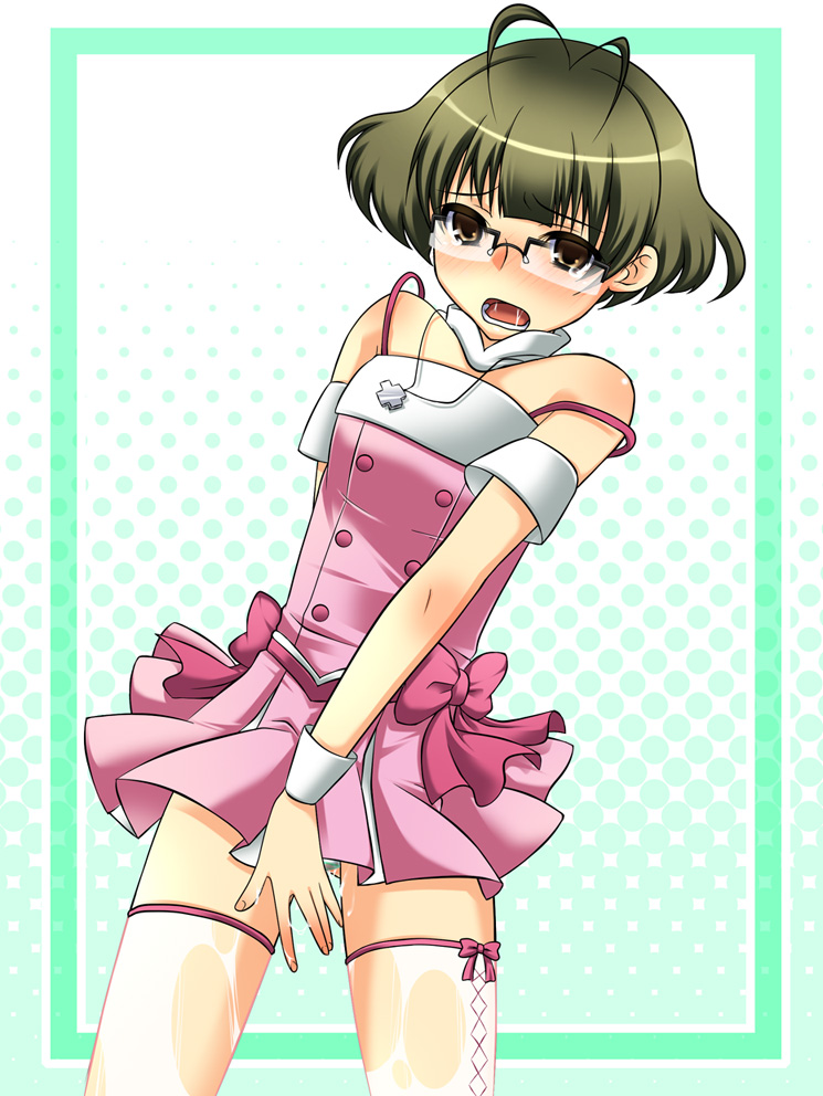 00s1boybare shouldersbrown eyesbrown haircrosscumcute & girly (idolmaster)glassesjewelrymale focusnecklaceopen mouthshotasolothighhighstorn clothestrapwhite thighhighs