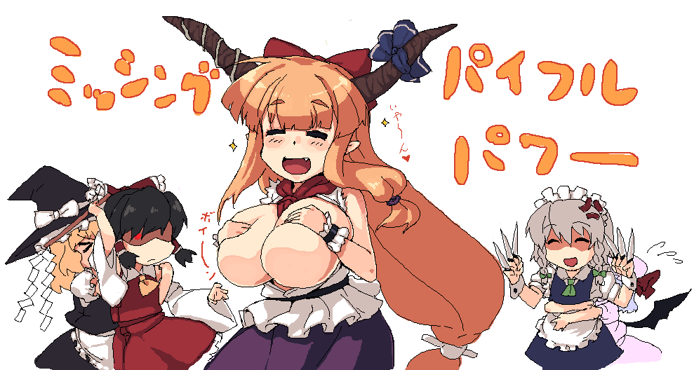 1boy5girlsalternate breast size (larger)angryblack hairblonde hairblushbraidbreast envybreast suppressbreastsclosed eyescovering breastscovering nipplescovering privatesdetached sleevesfangfemale focusglowingglowing eyeshathornshuge breastsjapanese clothesknifelarge breastsmaidmikomultiple girlsno braoekakioniopen clothesopen shirtrestrainedshirtshort hairtwin braidswingswitchwitch hatyou gonna get raped