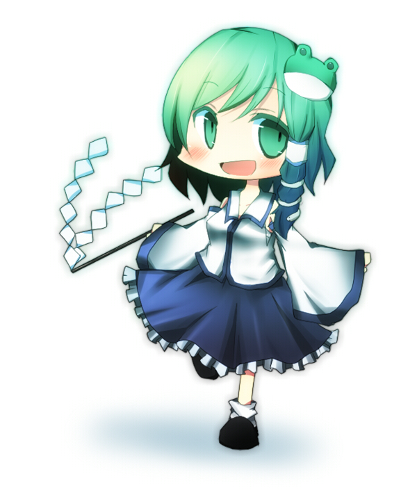 1girlalternate hairstyleaqua eyesaqua hairblue hairblushchibidetached sleevesfemale focusfull bodygoheigradient hairgreen eyesgreen hairhair ornamentmatching hair/eyesmulticolored hairopen mouthshort hairsmilesolostandingstanding on one leg