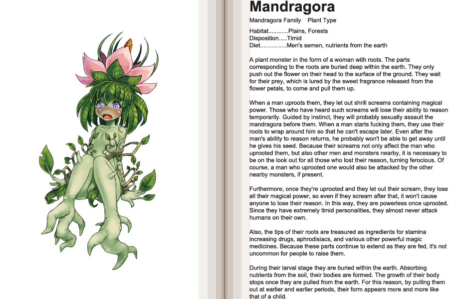 1girlblushcensoredcharacter profileconvenient censoringenglish textflat chestlolimandragoramonster girlopen mouthpetiteplant girl