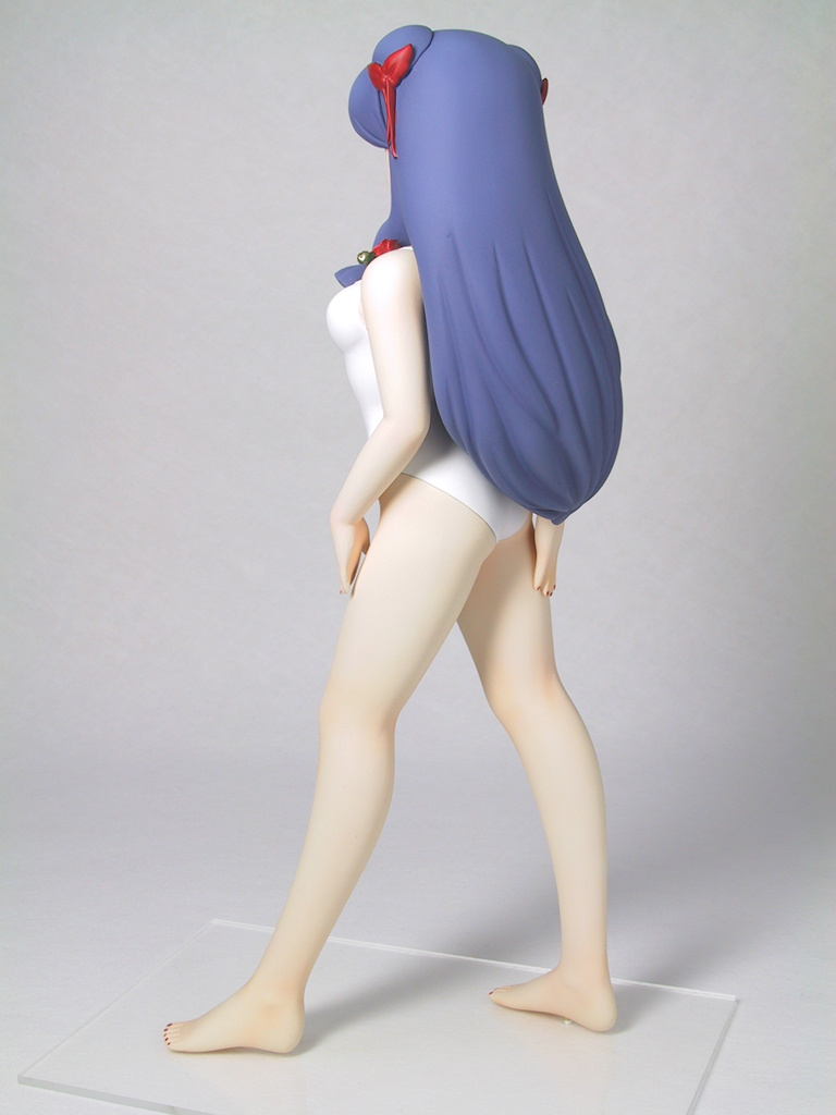 gevuxx, female tyrant (stella sora), tyrant (stella sora), stella sora, absurdres, commentary, english commentary, highres, 1girl, ass, bikini, blue eyes, blush, from behind, halterneck, long hair, looking at viewer, looking back, open mouth, pointy ears, ponytail, solo, swimsuit, very long hair, white bikini