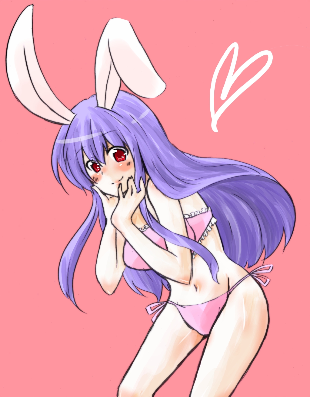 1girlanimal earsbrafemale focuslingerielong hairpantiespurple hairrabbit earsred eyessimple backgroundsolounderwearunderwear only