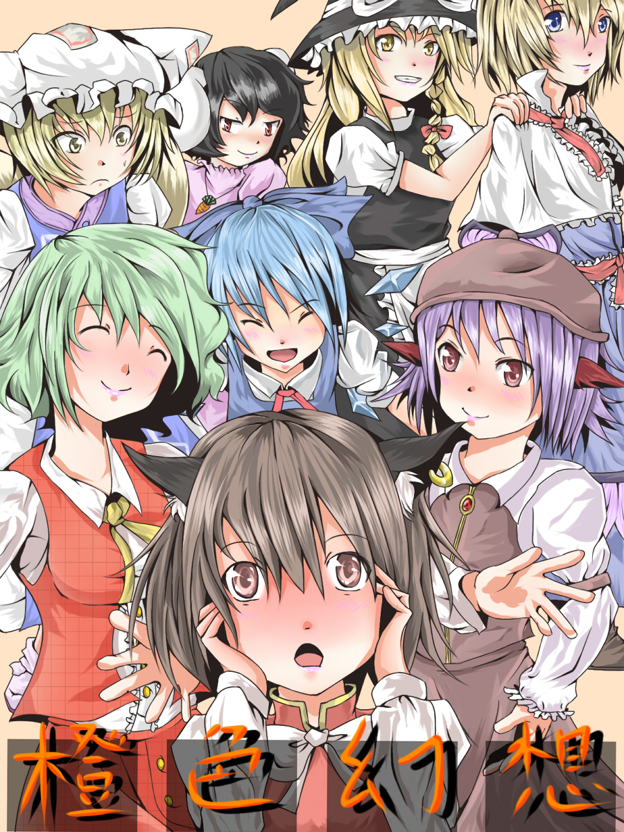 :d:o1boy6+girlsanimal earsanimal hatascotblack hairblonde hairblushcat earsclosed eyescollared shirteveryonefrillsfrowngreen hairgrinhathead tiltlong hairlong sleeveslooking at viewermob capmultiple girlsopen mouthplaid clothesplaid skirtplaid vestrabbit earsshirtshort hairshort sleevesskirtskirt setsmileunmoving patternupper bodyvestwitch hat