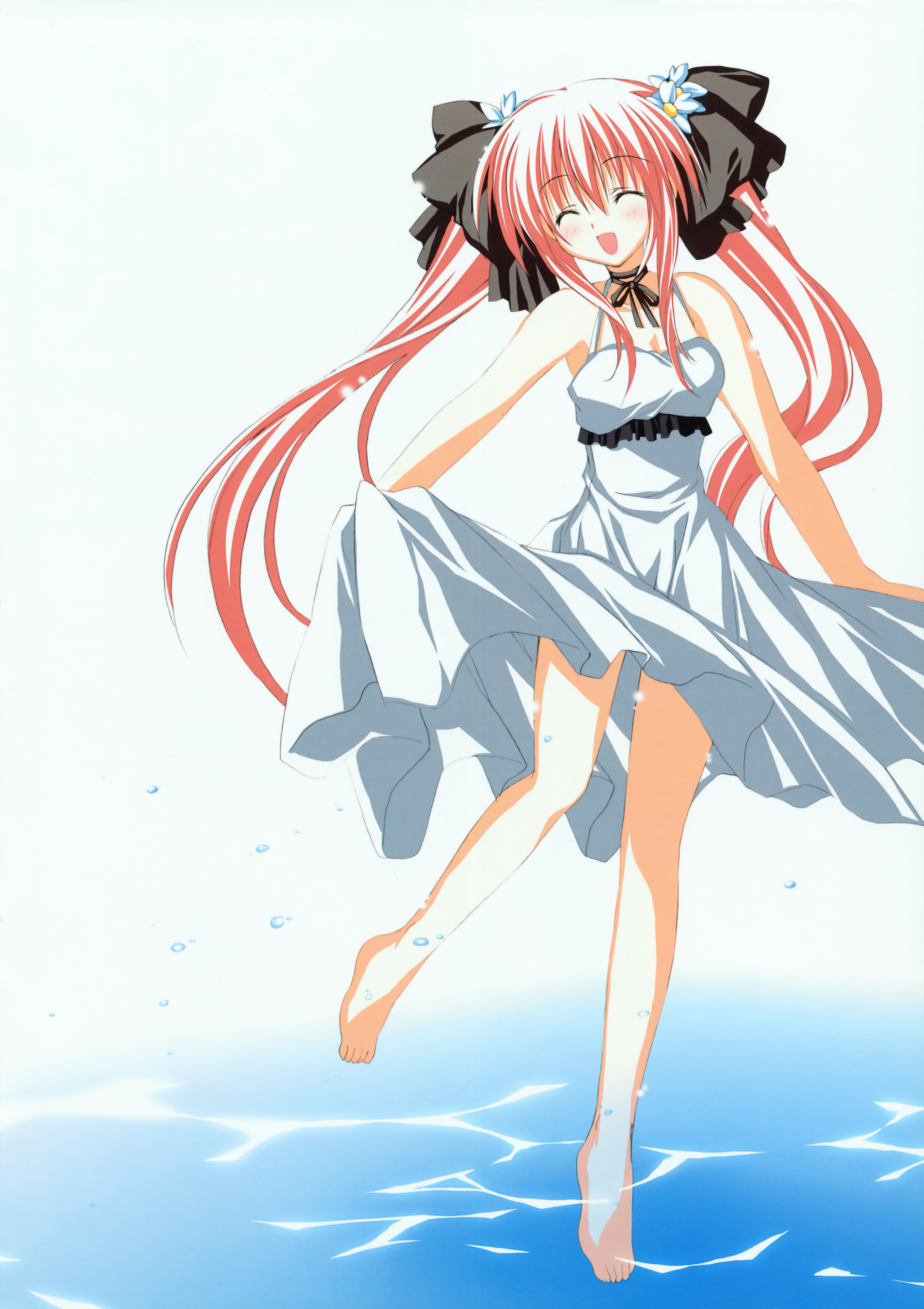 :d1boy1girlbarefootclosed eyesdressfemale focushair ribbonlong hairneck ribbonopen mouthpink hairribbonskirt holdsmilesolotoestwintailswaterwhite dress