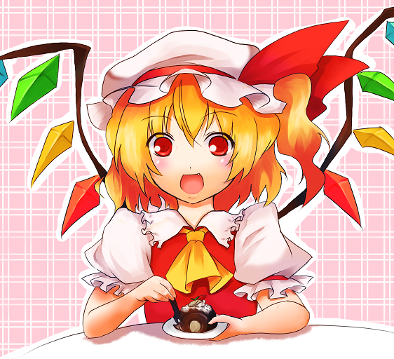 1girlblonde hairfemale focusfoodforkhatone side upponytailred eyesshort hairside ponytailsolowings