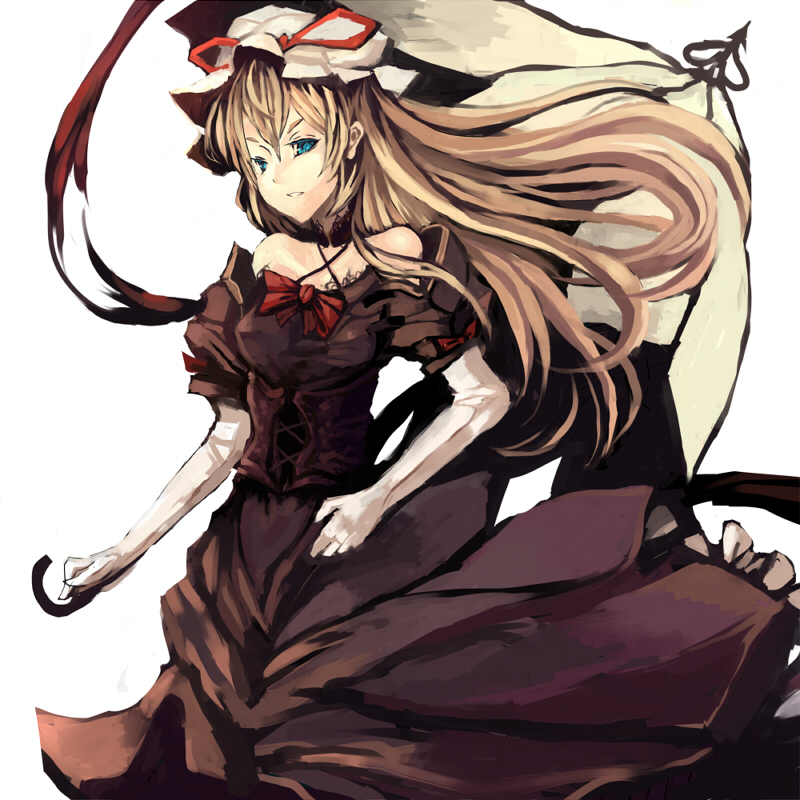 1girlbare shouldersblonde hairblue eyesfemale focusgloveshatlong hairsimple backgroundsoloumbrellawhite backgroundwhite gloves