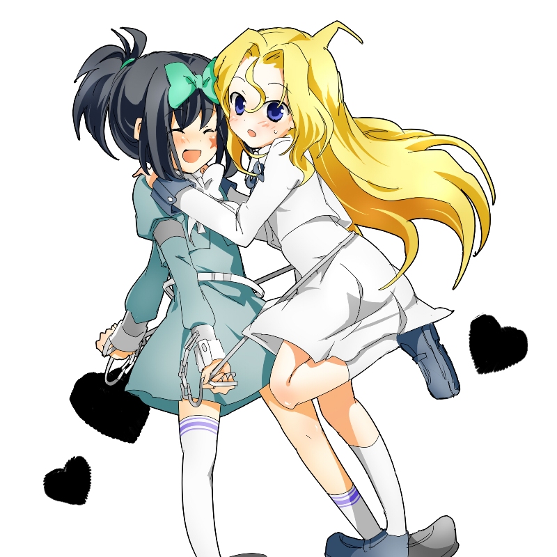 :d:o00s1boy2girlsahogeantenna hairblack hairblonde hairblue dressbowclosed eyesdressgloveshair bowheartkneehighslong hairlong sleevesmultiple girlsopen mouthponytailsimple backgroundsmilesocksthighhighsvery long hairwhite backgroundwhite glovesyurizettai ryouiki