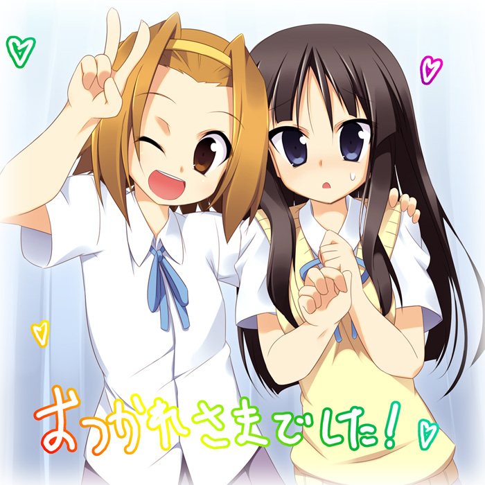 00s2girlsblack hairblue eyesbrown eyesbrown hairgrinhairbandlong hairmultiple girlsschool uniformshort hairsmilevwink