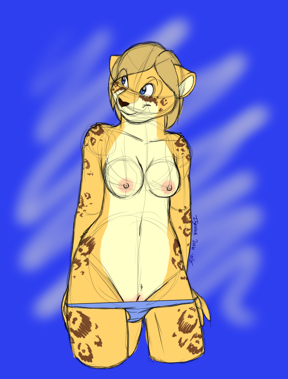 blonde hairblue eyesbreastsclothedclothingfelinefemaleFlag for Deletionhairjaguarmammalpantiespanties downpussysolotoplessunderwearundressing