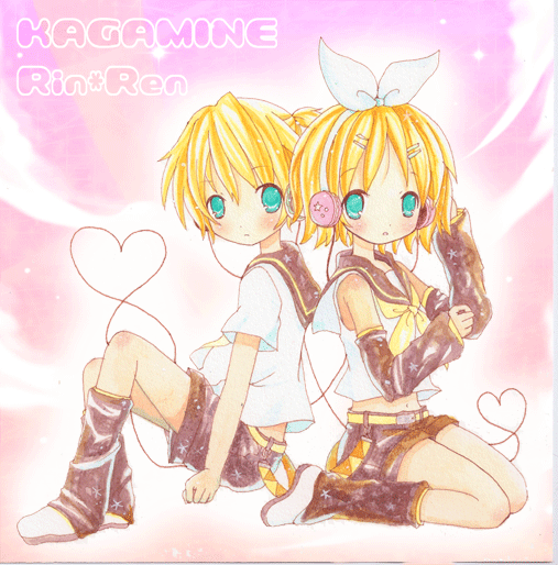 1boy1girlblonde hairbrother and sistergreen eyeshair ornamenthair ribbonhairclipheadphonesnecktieribbonshort hairshortssiblingssittingtwins