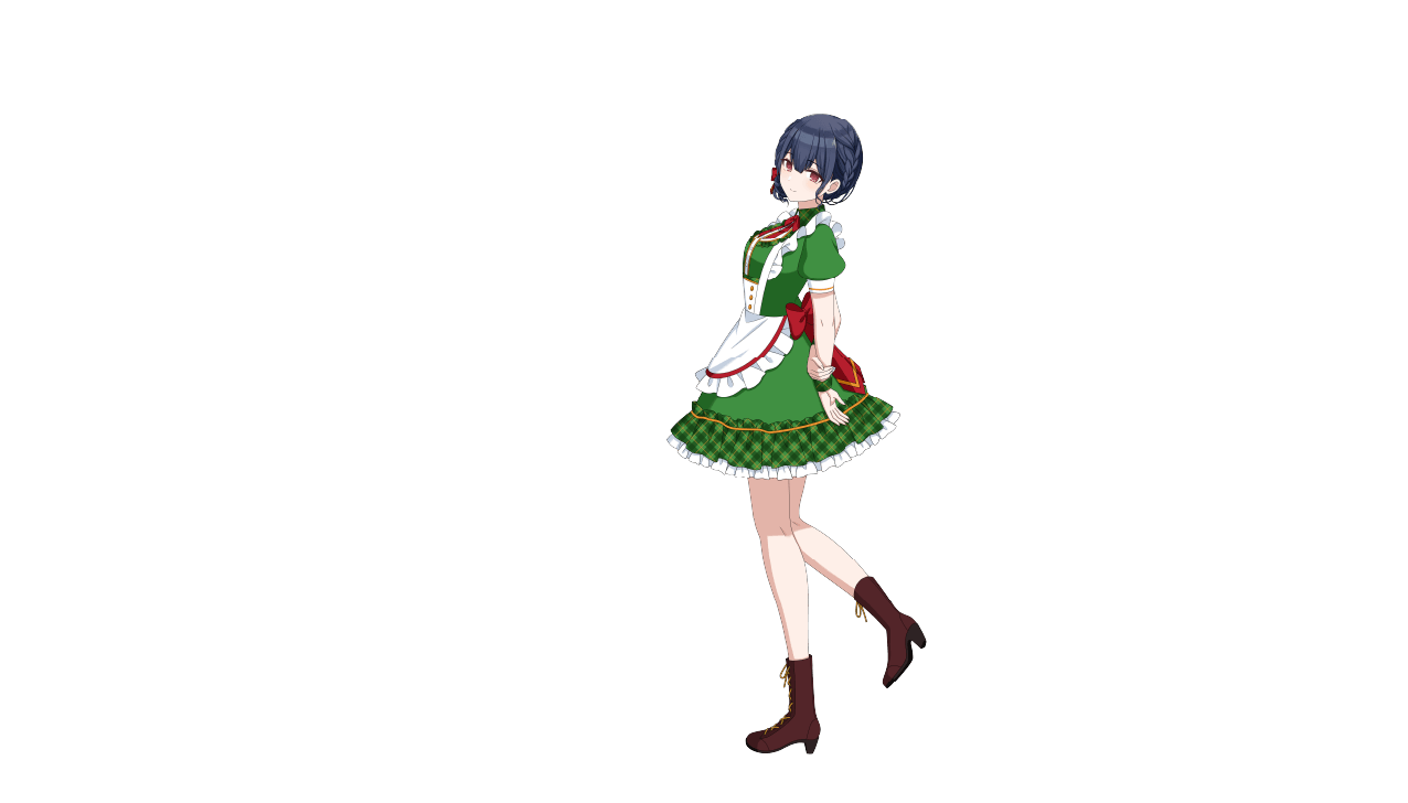 1girlapronblue hairbootsfrillsfull bodyhigh heel bootshigh heelslace-up bootsneck ribbonred eyesribbonsolowrist cuffs