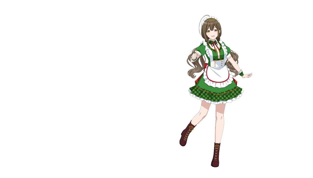 1girlapronbootsbrown hairbuttonsfrillsfull bodylace-up bootsmaidmaid headdressneck ribbonopen mouthribbonsolotransparent backgroundwrist cuffs