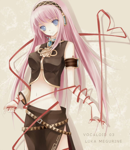 1girlblue eyesfemale focusheadphonesheadsetheartlong hairmidriffnavelpink hairskirtsmilesolostringstring of fatethighhighs