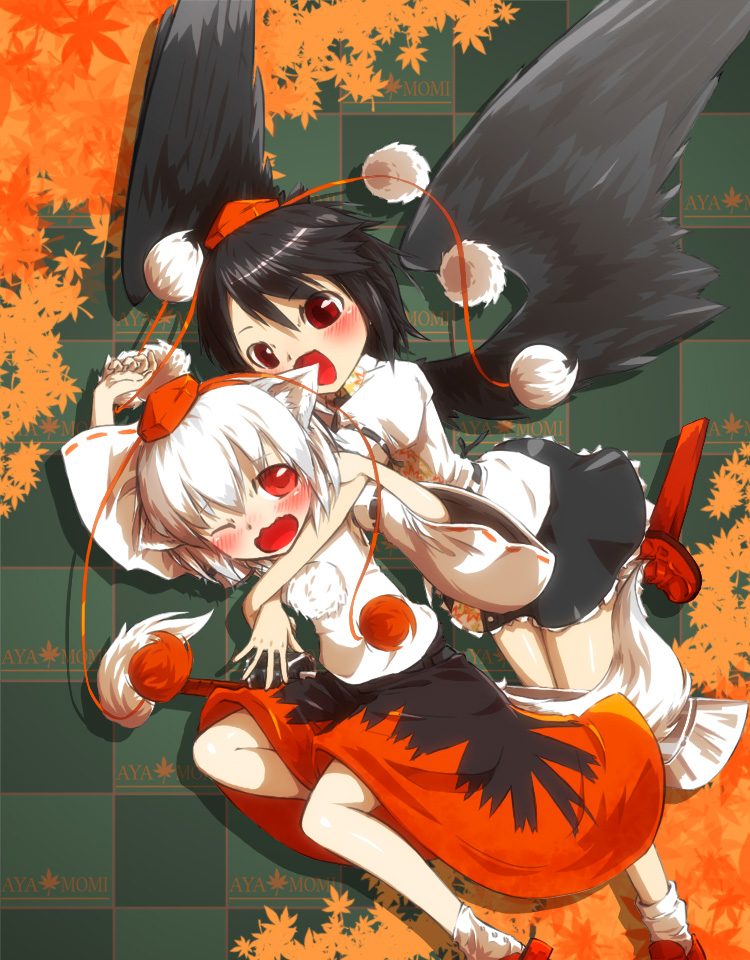 kanzaki karuna, tohsaka rin, fate/stay night, fate (series), 00s, 1girl, aqua eyes, black hair, female focus, long hair, one eye closed, open mouth, pointing, skirt, solo, thighhighs, turtleneck, wink