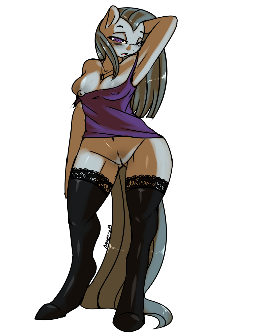 anthroanthrofiedblushbreastsclothesequineerect nipplesfemaleFlag for Deletiongray hairhorselooking at viewernipple slipnipplesplain backgroundponypurple eyespussyshirtstandingstockingsstrap slip