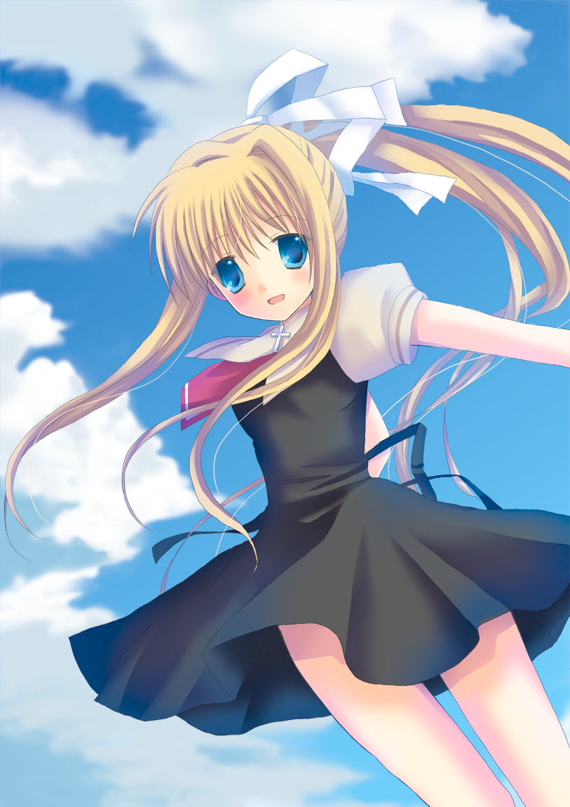 00s1girlblonde hairblue eyesclouddayfemale focushair intakeshair ribbonjewelrylong hairnecklaceoutdoorsoutstretched armsponytailribbonschool uniformsolospread arms