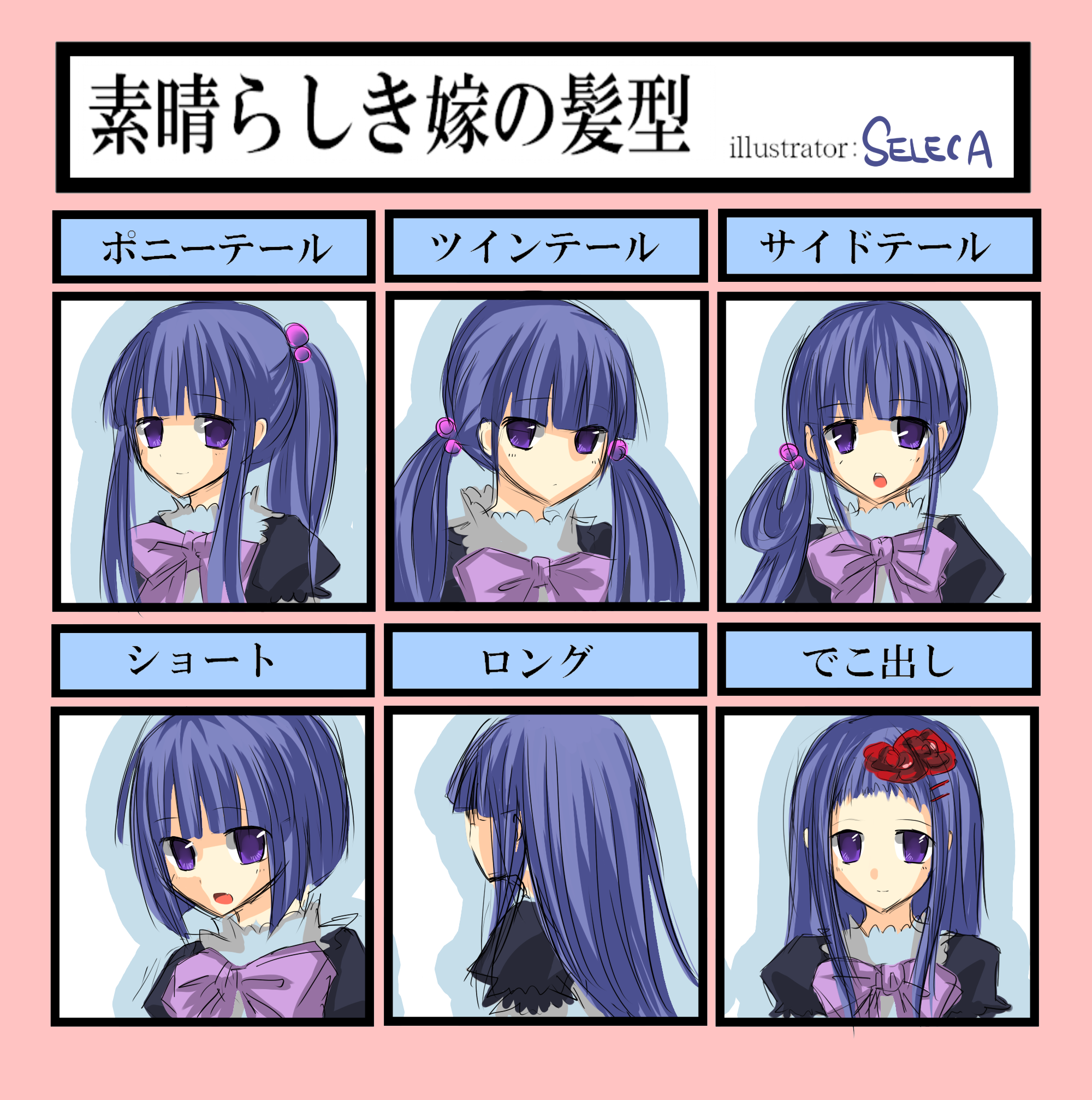 00salternate hairstyleblue hairdressflowerhair flowerhair ornamentlong hairmultiple viewsponytailpurple eyesribbonshort hairside ponytailtwintails