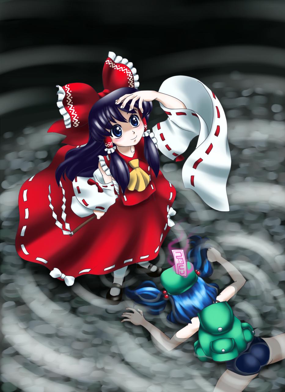 2girlsbackpackbagfaceplantfemale focusgoheijapanese clotheslooking upmultiple girlsofudaone-piece swimsuitrandoseruripplesschool swimsuitskirtswimsuittwo side up