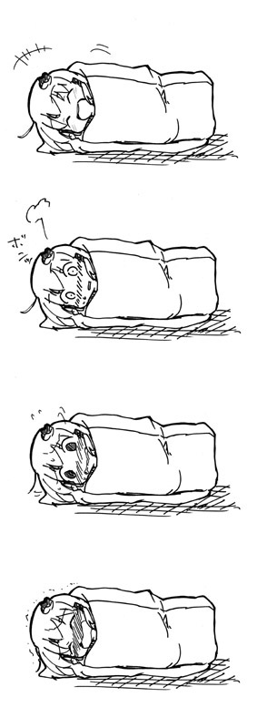 :d1boy4komablanketchibiclosed eyescomicfemale focusgreyscalemonochromeopen mouthreed matsilent comicsmilesweatdroptearstrembling