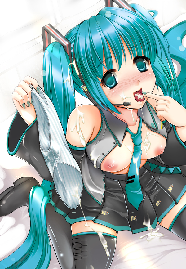 1girlaqua eyesaqua hairaqua nailsblushbreastsbukkakecumcum in mouthcum on bodycum on breastscum on clothescum on haircum on lower bodycum on tonguecum on upper bodycumdripdetached sleevesfemale focusfrom aboveheadphonesheadsetholdingholding pantiesholding underwearholding unworn clotheslong hairnail polishnecktienipplesopen clothesopen mouthopen shirtpantiesshirtsittingskirtsolostriped clothesstriped pantiesthighhighstwintailsunderwearvery long hairwarizazettai ryouiki