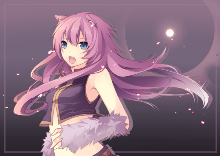 1girlanimal earsblue eyesbreastscat earsfemale focuslong hairmidriffnavelpink hairsmall breastssolo
