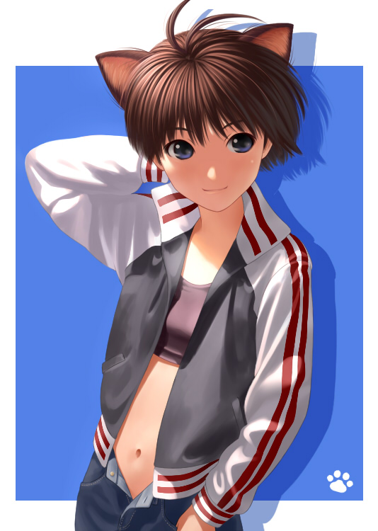 00s1girlanimal earsantenna hairbrown haircat earscat girlfemale focusflat chestjacketnavelraglan sleevessmilesolosports braunzipped