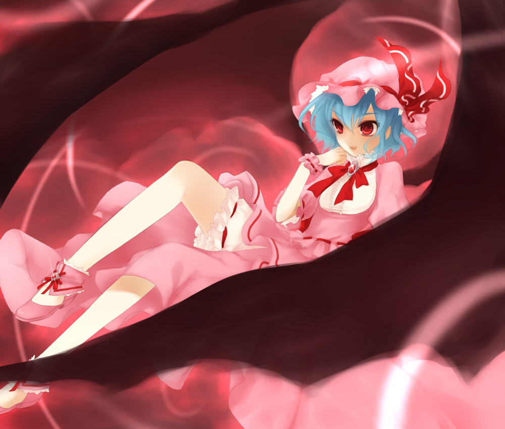 1girlblue hairfemale focusgradient backgroundhatred eyesribbonshort hairskirtsolounderwearwingswrist cuffs