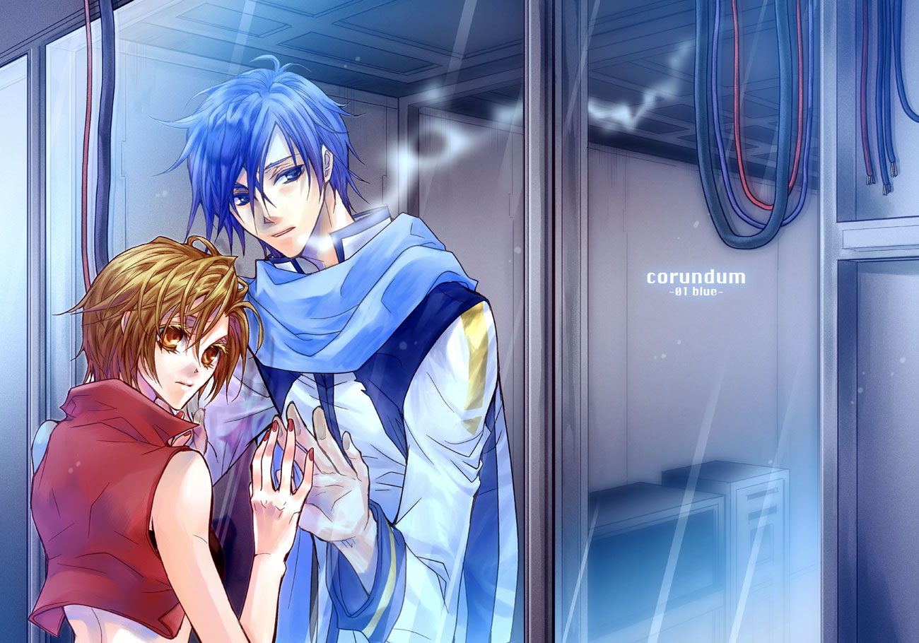 1boy1girlblue eyesblue hairblue scarfbrown eyesbrown haircoupleheteromidriffnail polishred nailsscarfshort hair
