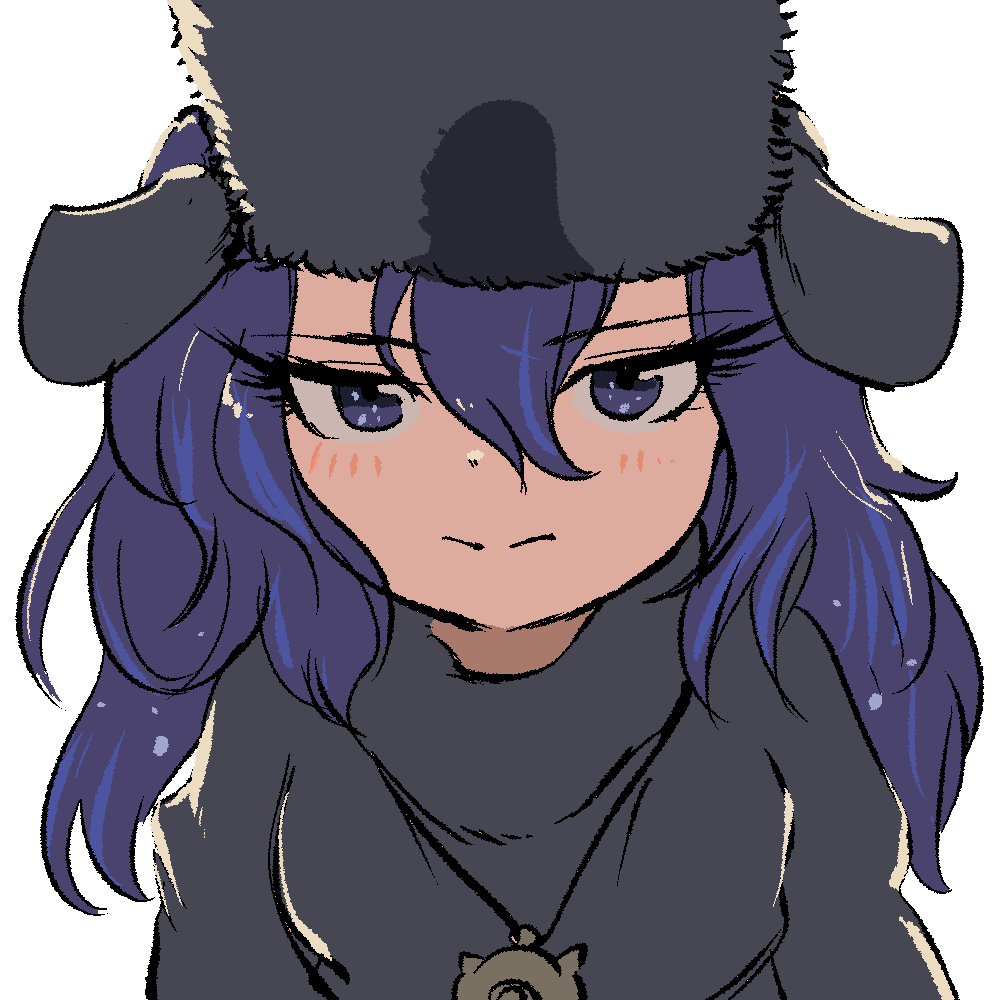 1girlblack hatblack sweaterblue eyesblue hairblushclose-upfinshair between eyeshathead finsjapari symboljewelrylong hairlong sleevesnecklacesidelockssolosweaterturtleneckturtleneck sweaterushankawhale girl