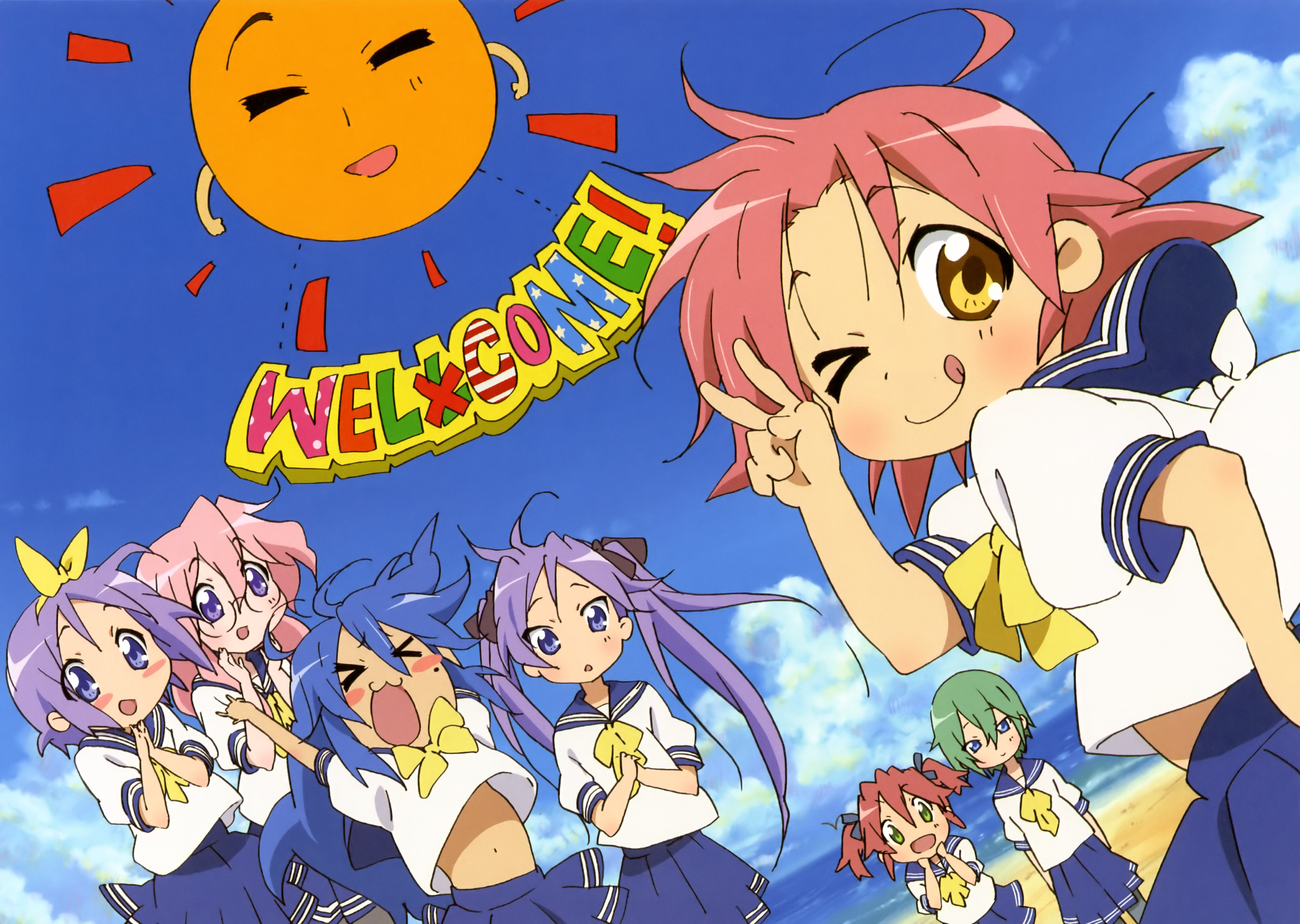 00s6+girlsbeachblue eyesblue hairclouddayglassesgreen eyesgreen hairhair ribbonhairbandlong hairmolemole under eyemultiple girlsnavelone eye closedpink hairpurple eyespurple hairribbonsandschool uniformserafukushort hairsiblingssistersskytonguetongue outtwinstwintailsupper bodywaterwink