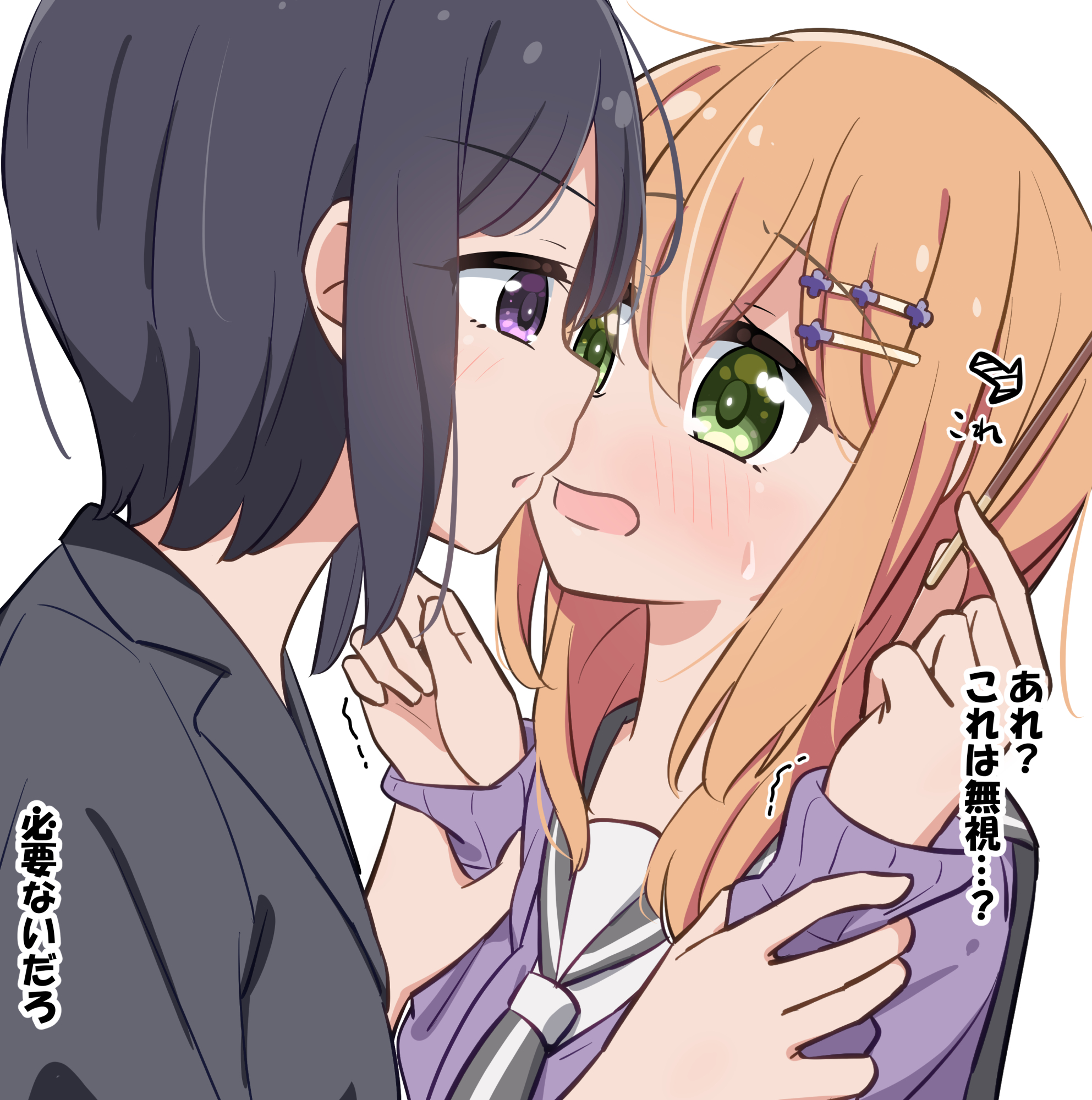 pierre norano, kati mannequin, sumeragi lee noriega, gundam, gundam 00, purple legwear, 00s, 2girls, armpits, ass, ass-to-ass, back-to-back, black hair, blue thighhighs, bra, bra pull, breast press, breasts, bridal gauntlets, brown eyes, brown hair, clothes pull, cupless bra, elbow gloves, garter belt, glasses, gloves, hair up, large breasts, lingerie, long hair, mature female, mole, mole under mouth, multiple girls, nipples, no panties, one eye closed, purple eyes, short hair, symmetrical docking, thighhighs, underwear, wink