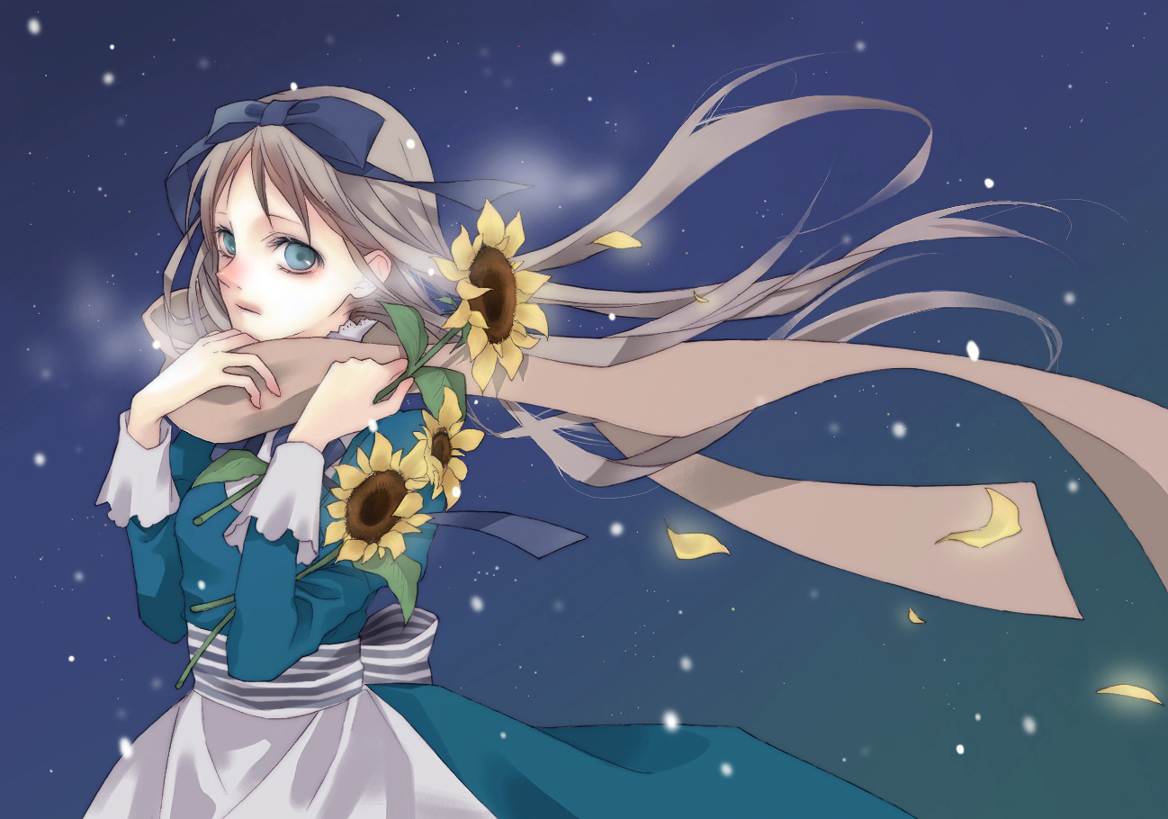 00s1girlbreathdressfemale focusflowerhair ribbonlong hairnightpetalsred noseribbonscarfsnowsolosunflowerwinter