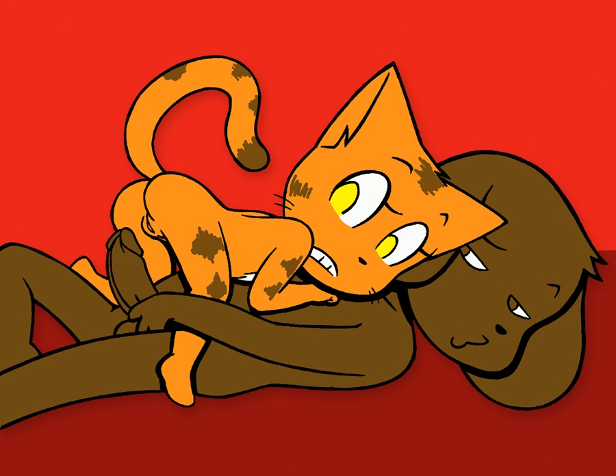 anthroassballsbrown furcanineclenched teetherectionfelinefemaleFlag for Deletionfurfurryimminent sexinterspeciesmaleorange furpenispussysize differencestraightstripestailyellow eyes