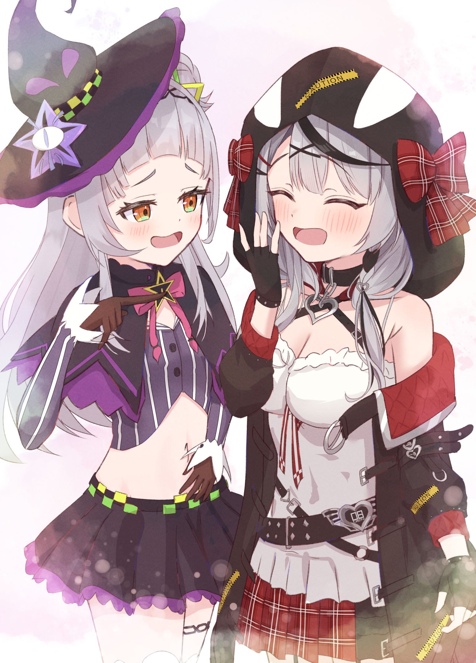 1boy2girlsanimal hoodblack chokerblack glovesblack hairblack hatblack jacketblack skirtblushbowbreastscamisolechokercleavageclosed eyescropped shirtfingerless glovesglovesgrey hairgrey shirthair bunhair ornamenthathoodjacketlarge breastslong sleeveslowleglowleg skirtmulticolored hairmultiple girlsnavelopen clothesopen jacketorange eyesorca hoodpinstripe patternpinstripe shirtplaid bowpleated skirtred bowred skirtshirtside up bunskirtstreaked hairstriped clothesstriped shirttilted headweartonguevertical-striped clothesvertical-striped shirtvirtual youtuberwhite camisolewitch hatx hair ornament
