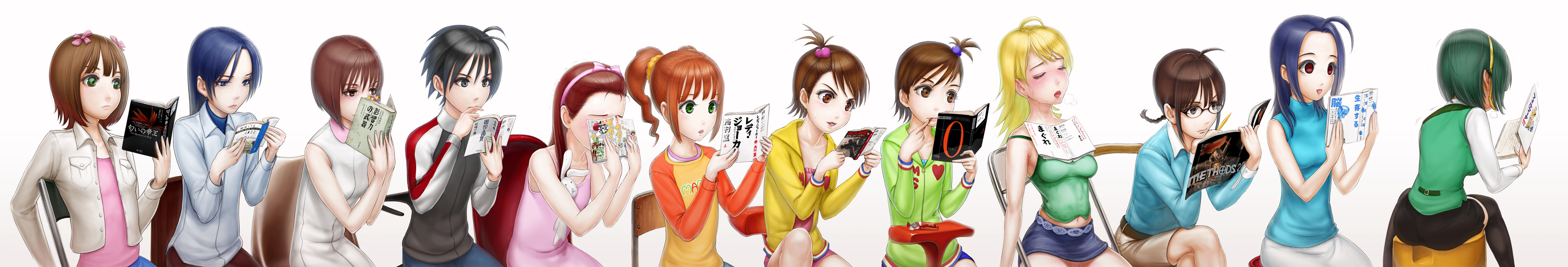 c.c., kouzuki kallen, lelouch vi britannia, shirley fenette, code geass, absurdres, derivative work, highres, vector trace, 00s, 1boy, 3girls, breasts, carrying, cleavage, green hair, large breasts, legs, long hair, medium breasts, miniskirt, multiple girls, princess carry, purple eyes, red hair, school uniform, skirt, yellow eyes